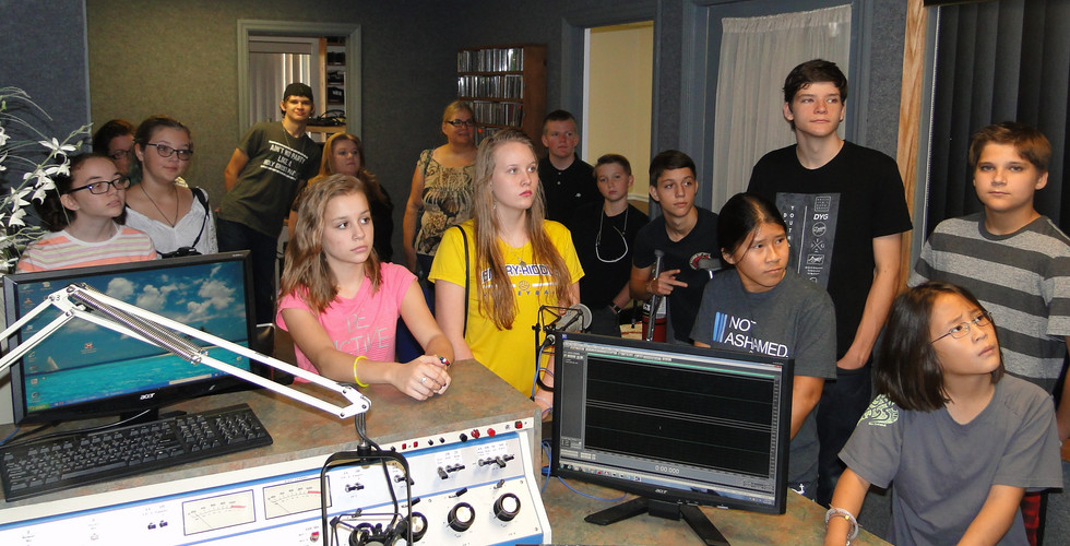 The Cornerstone was privileged to host the Home Base Homeschool Co-op for a fun-filled field trip. Honestly, I think we enjoyed it even more than the kids did! Bill gave them an overview of how radio works; Chris and Christina provided some hands-on time in the studio; and I got to share all the fantastic ministry opportunities we have as a community radio station. Aren't these just the greatest (and cutest) kids you've ever seen?!